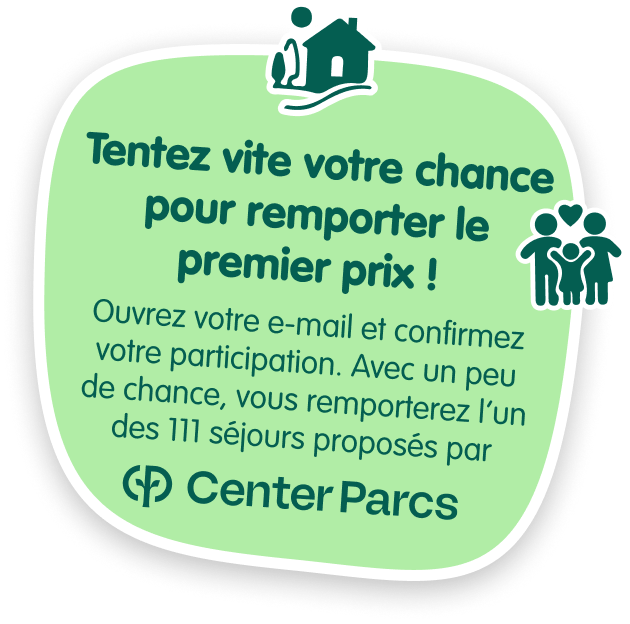 Tout versement en espèces est exclu. En cas de perte ou de vol, aucun remboursement n’est accordé par Center Parcs Germany GmbH ou HARIBO GmbH & Co. KG.